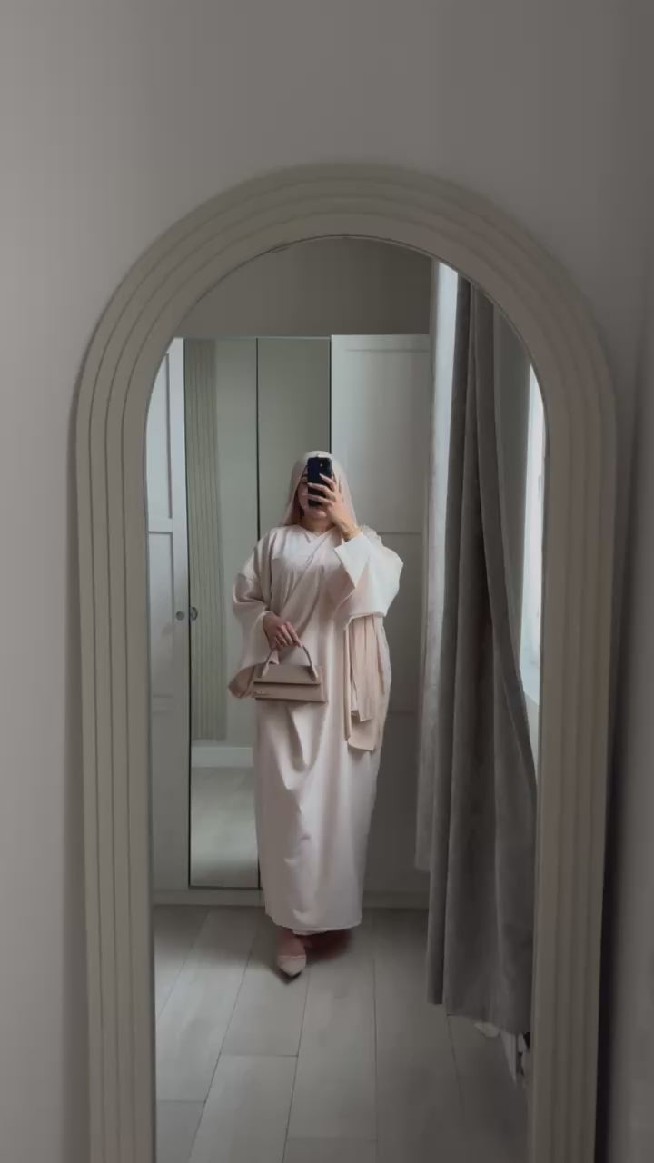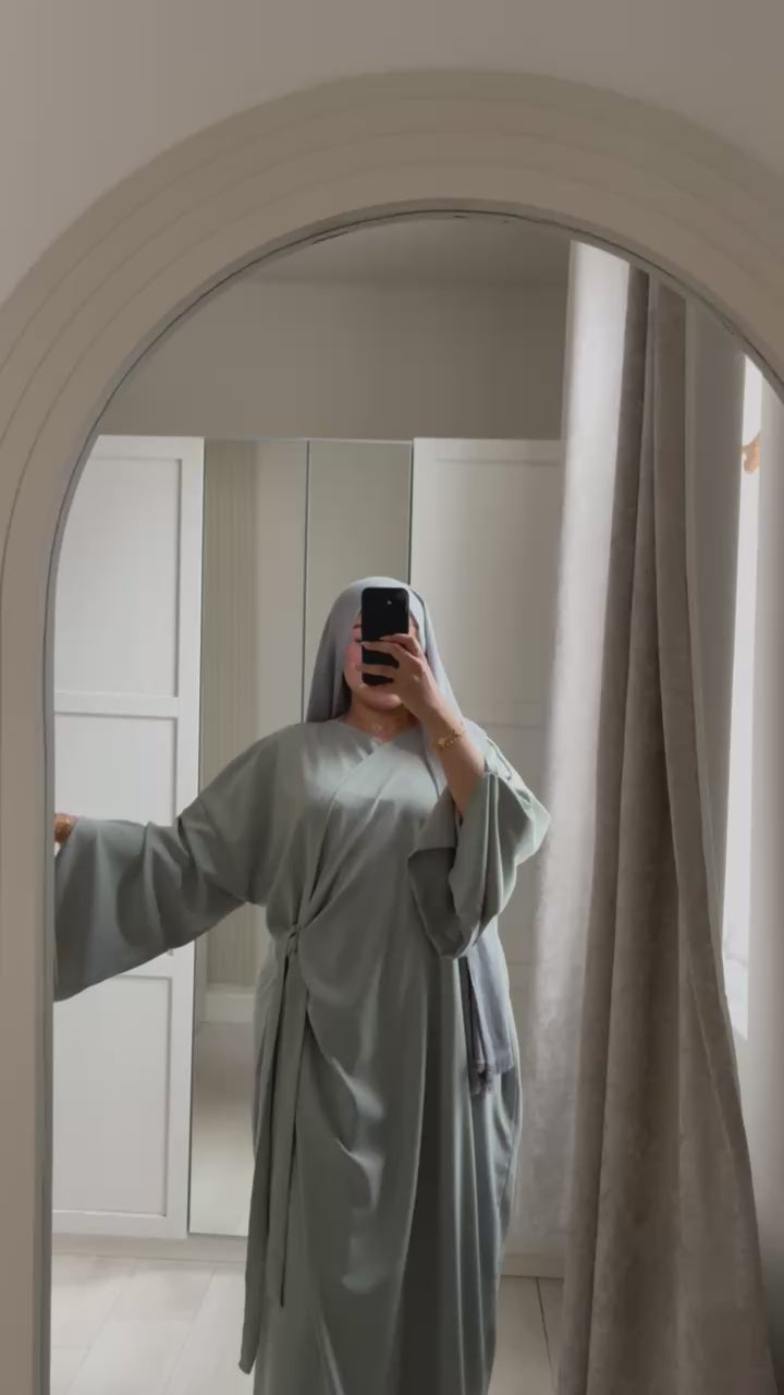 Clean, modern and effortlessly sophisticated, this wrap abaya is an essential wardrobe staple for the contemporary modest dresser. Designed with a sleek open-front silhouette that ties closed for a tailored, customisable fit, this piece strikes the perfect balance between structure and ease.