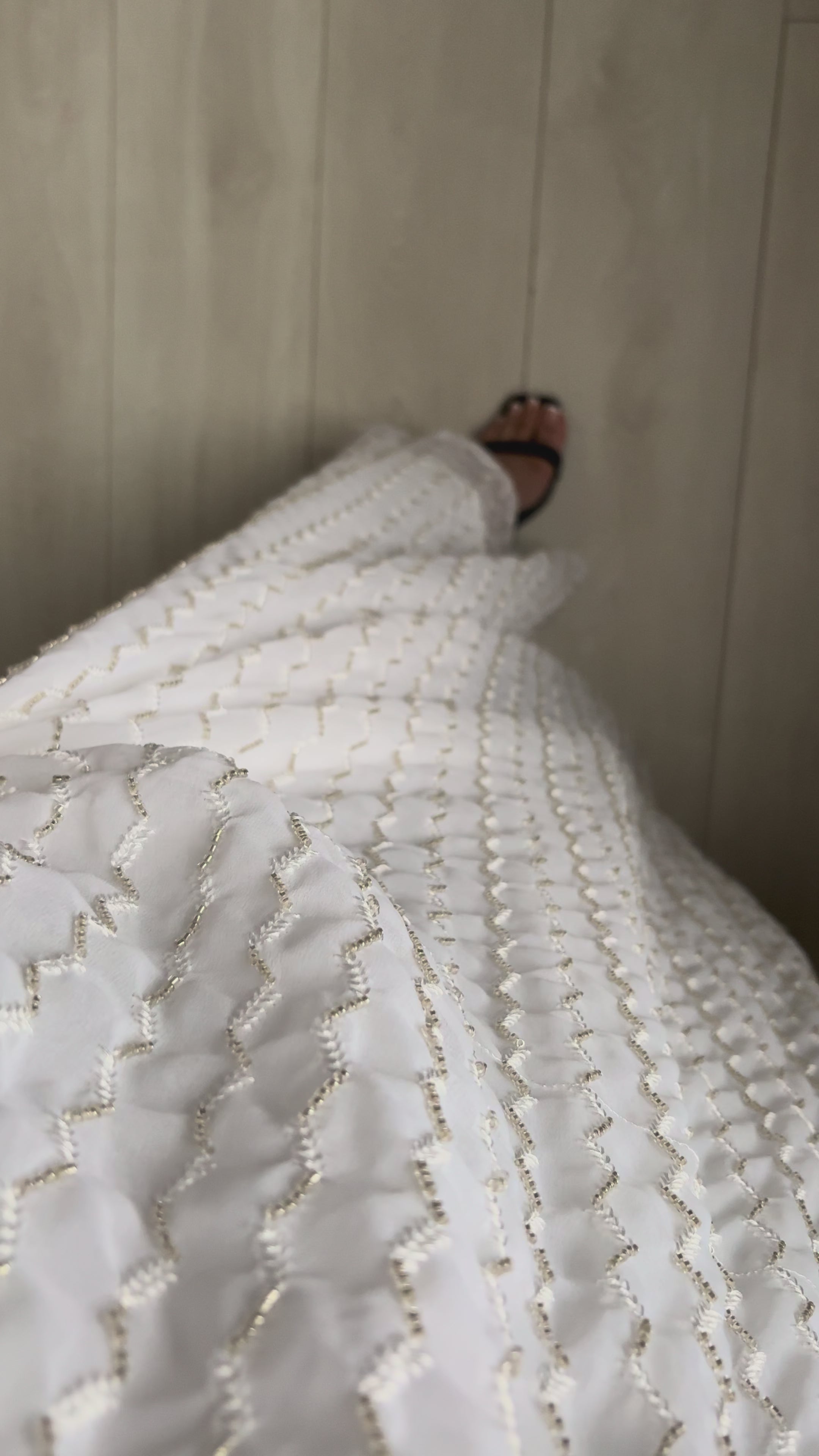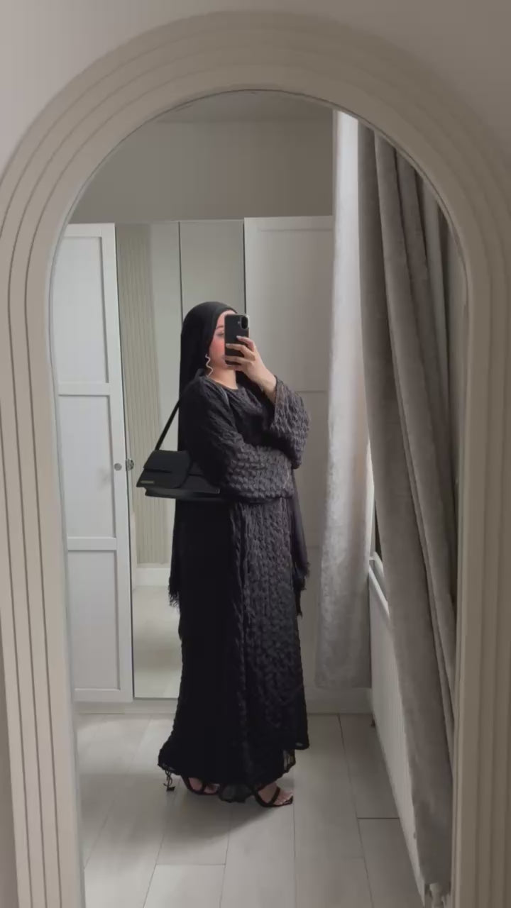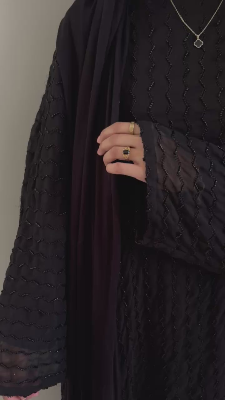 An elegant embellished kaftan crafted from lightweight, flowing fabric with delicate tonal detailing throughout. Designed with a relaxed silhouette and graceful drape, it offers effortless sophistication and comfort. Perfect for special occasions, evening gatherings, or refined everyday wear.