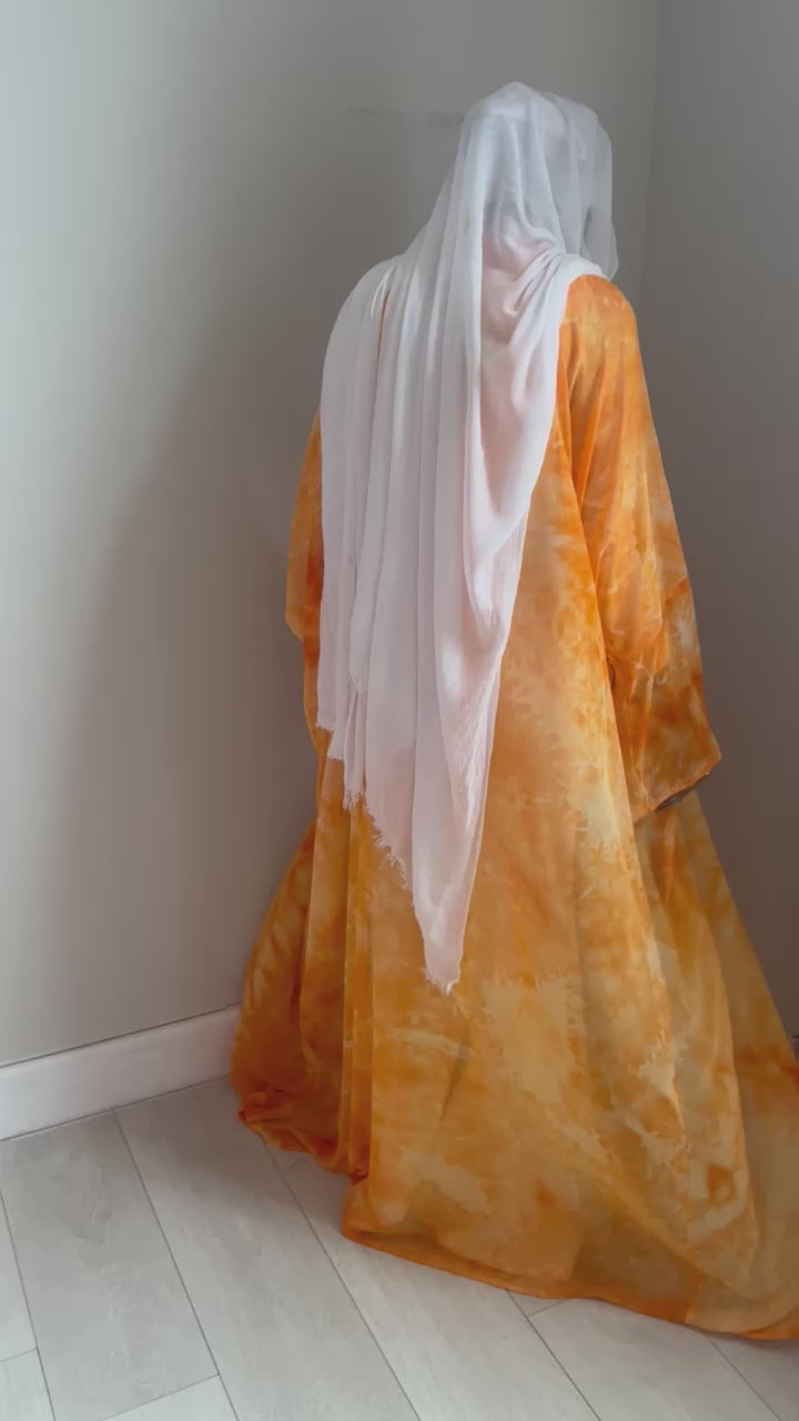 Effortlessly chic and utterly unique, this open kimono abaya features a stunning hand-dyed marble effect that ensures no two pieces are ever exactly the same. Crafted from a soft, sheer and lightweight fabric, it drapes beautifully and flows with every movement - the perfect blend of modest fashion and contemporary style.